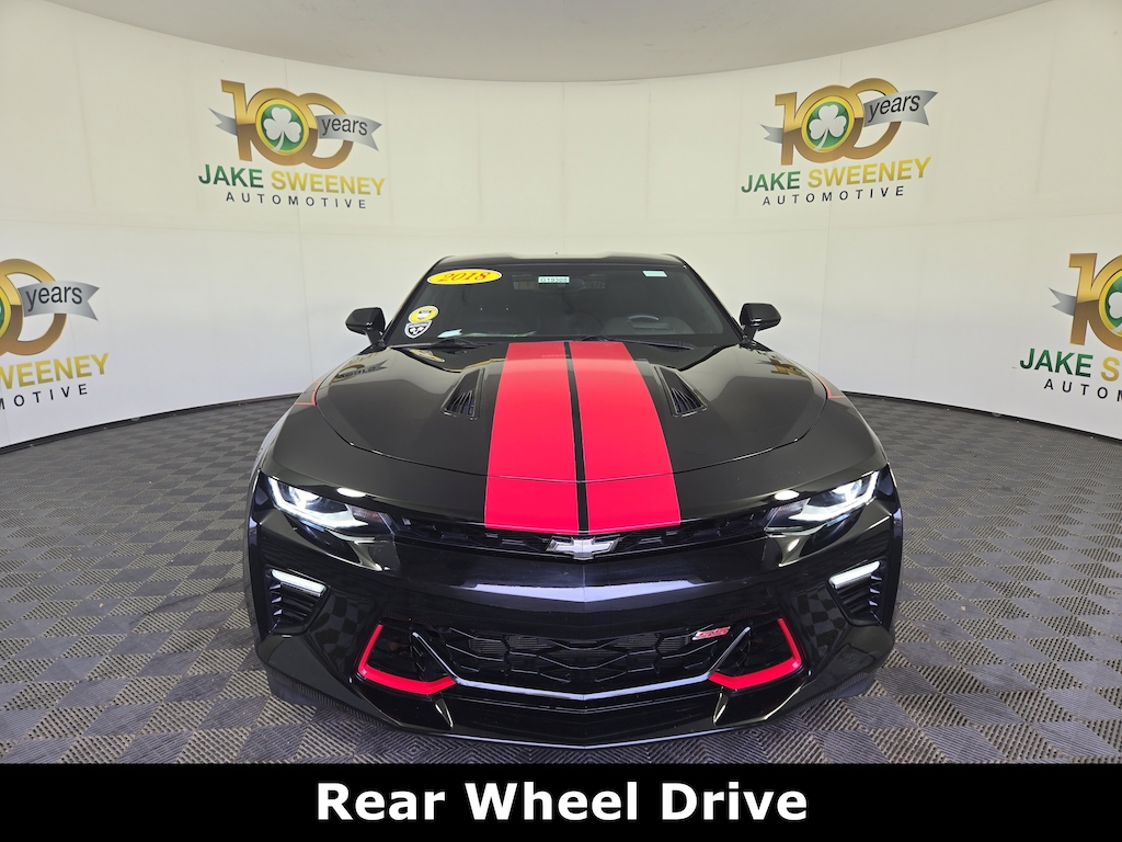 Jake Sweeney Is Here to Help! If you are in need of a new or used vehicle, we are offering you the ability to shop online and have your vehicle delivered to your home. Black 2018 Chevrolet Camaro SS 2SS RWD 8-Speed Automatic 6.2L V8 LIFETIME POWERTRAIN WARRANTY, DUAL MODE PERFORMANCE EXHAUST, 2 USB Ports & Auxiliary Input Jack, Black Front & Rear Bowtie Emblems (LPO), Black Outside Mirror Caps, Bose Premium 9-Speaker Audio System Feature, Camaro Emblem, Dark Finish Tail Lamps (LPO), Decklid Blackout Decal (LPO), Hash Mark Decal (LPO), Preferred Equipment Group 2SS, Premium Carpeted Floor Mats w/Camaro Logo (LPO), Radio: Chevrolet MyLink w/Navigation, Redline Edition, SiriusXM Satellite Radio, SS Lower Grille w/Red Accent Insert (LPO), Wheels: 20" x 8.5" Fr/20" x 9.5" Rr Blk-Painted.