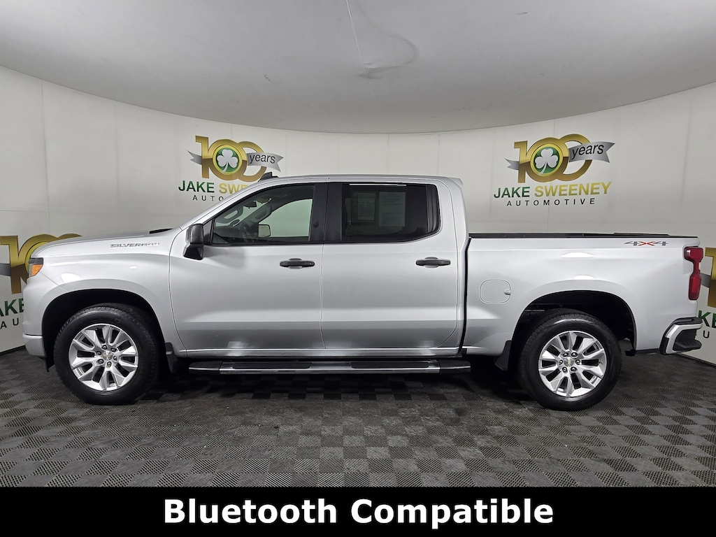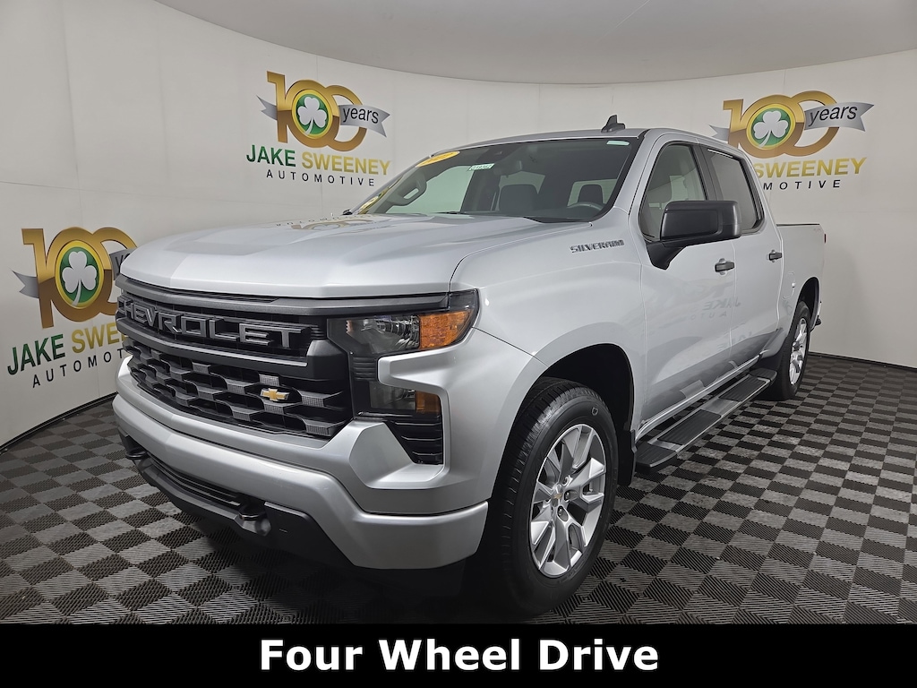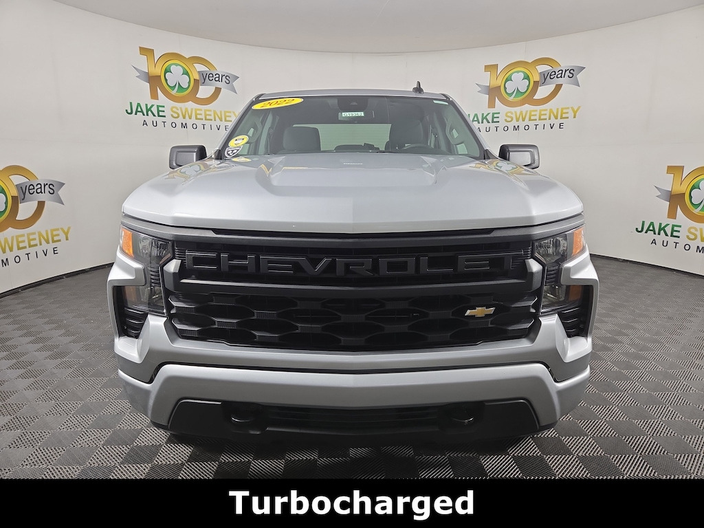 Jake Sweeney Is Here to Help! If you are in need of a new or used vehicle, we are offering you the ability to shop online and have your vehicle delivered to your home. Silver Ice Metallic 2022 Chevrolet Silverado 1500 Custom 4WD 8-Speed Automatic 2.7L Turbo LIFETIME POWERTRAIN WARRANTY, AUTO LOCKING REAR DIFFERENTIAL, 8-Speed Automatic, 4WD, Jet Black Cloth, 10-Way Power Driver Seat w/Lumbar, 120-Volt Bed Mounted Power Outlet, 120-Volt Instrument Panel Power Outlet, 3.5" Monochromatic Display Driver Info Center, Bluetooth® For Phone, Chevrolet Connected Access Capable, Color-Keyed Carpeting Floor Covering, Compass, Custom Convenience Package, Custom Value Package, Deep-Tinted Glass, Dual Rear USB Ports (Charge Only), Electric Rear-Window Defogger, Electrical Steering Column Lock, Electronic Cruise Control, EZ Lift Power Lock & Release Tailgate, Front Frame-Mounted Black Recovery Hooks, Front Rubberized Vinyl Floor Mats, HD Rear Vision Camera, Hitch Guidance, LED Cargo Area Lighting, Manual Tilt Wheel Steering Column, OnStar & Chevrolet Connected Services Capable, Power Front Windows w/Driver Express Up/Down, Power Front Windows w/Passenger Express Down, Power Rear Windows w/Express Down, Preferred Equipment Group 1CX, Rear 60/40 Folding Bench Seat (Folds Up), Rear Rubberized-Vinyl Floor Mats, Remote Keyless Entry, Remote Vehicle Starter System, SiriusXM Radio, Standard Tailgate, Theft Deterrent System (Unauthorized Entry), Trailering Package, Wi-Fi Hot Spot Capable, Wireless Phone Projection.