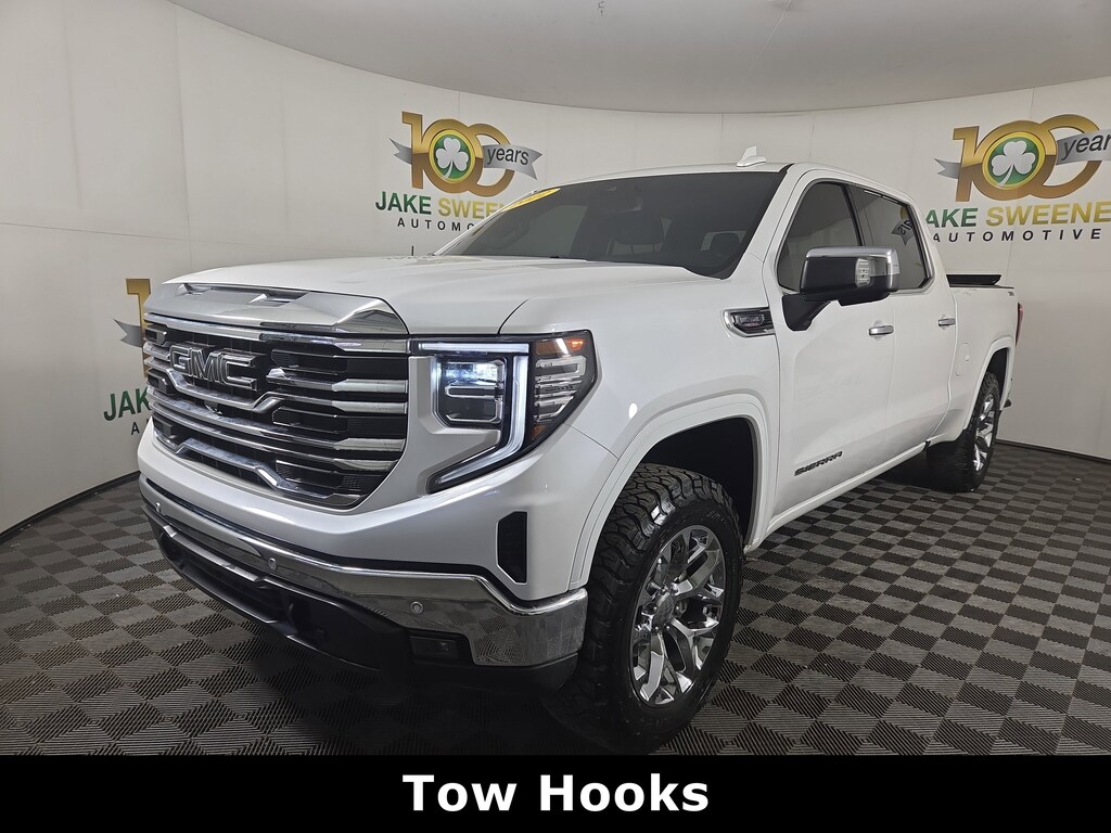 Jake Sweeney Is Here to Help! If you are in need of a new or used vehicle, we are offering you the ability to shop online and have your vehicle delivered to your home. White Frost Tricoat 2022 GMC Sierra 1500 SLT 4WD 10-Speed Automatic 3.0L I6 LIFETIME POWERTRAIN WARRANTY, 10-Speed Automatic, 4WD, Jet Black Leather, 120-Volt Bed Mounted Power Outlet, 120-Volt Instrument Panel Power Outlet, 170 Amp Alternator, 2 Charge/Data USB Ports, 2 Charge/Data USB Ports Inside Center Console, 2 Type-C Charge-Only Rear USB Ports, 20" Polished Aluminum Wheels, 6-Speaker Audio System Feature, Adaptive Cruise Control, All-Weather Floor Liner (LPO), Auto-Locking Rear Differential, Auxiliary External Transmission Oil Cooler, Chrome Header & Chrome Grille Insert Bars, Chrome Wheel To Wheel Assist Steps, Color-Keyed Carpeting Floor Covering, Compass, Deep-Tinted Glass, Electric Rear-Window Defogger, Electrical Steering Column Lock, Electronic Precision Shift, Floor-Mounted Center Console, Front Bucket Seats, Front Frame-Mounted Black Recovery Hooks, Front Rainsensing Wipers, GMC Connected Access Capable, HD Rear Vision Camera, HD Surround Vision, Heated 2nd Row Outboard Seats, Heated Steering Wheel, High Capacity Suspension Package, Hitch Guidance, Hitch Guidance w/Hitch View, In-Vehicle Trailering App, Integrated Trailer Brake Controller, Keyless Open & Start, LED Cargo Area Lighting, Manual Tilt-Wheel & Telescoping Steering Column, OnStar & GMC Connected Services Capable, Perimeter Lighting, Power Door Locks, Power Front Passenger Windows w/Express Up/Down, Power Front Windows w/Driver Express Up/Down, Power Rake & Telescoping Steering Column, Power Rear Windows w/Express Down, Power Sliding Rear Window w/Rear Defogger, Preferred Equipment Group 4SA, Premium Bose 7-Speaker Sound System, ProGrade Trailering System, Push Button Start, Rear Cross Traffic Braking, Rear Pedestrian Detection, Rear Wheelhouse Liners, Remote Vehicle Starter System, Safety Alert Seat, Sierra Safety Plus Package, SiriusXM w/360L, SLT Convenience Package, SLT Preferred Package, SLT Premium Plus Package, Spray-On Pickup Bed Liner w/GMC Logo, Steering Wheel Audio Controls, Theft Deterrent System (Unauthorized Entry), Trailer Camera Provisions, Trailer Side Blind Zone Alert, Trailering Package, Ultrasonic Front & Rear Park Assist, Universal Home Remote, Ventilated Driver & Front Passenger Seats, Wi-Fi Hotspot Capable, Wireless Charging, Wireless Phone Projection, X31 Off-Road & Protection Package.