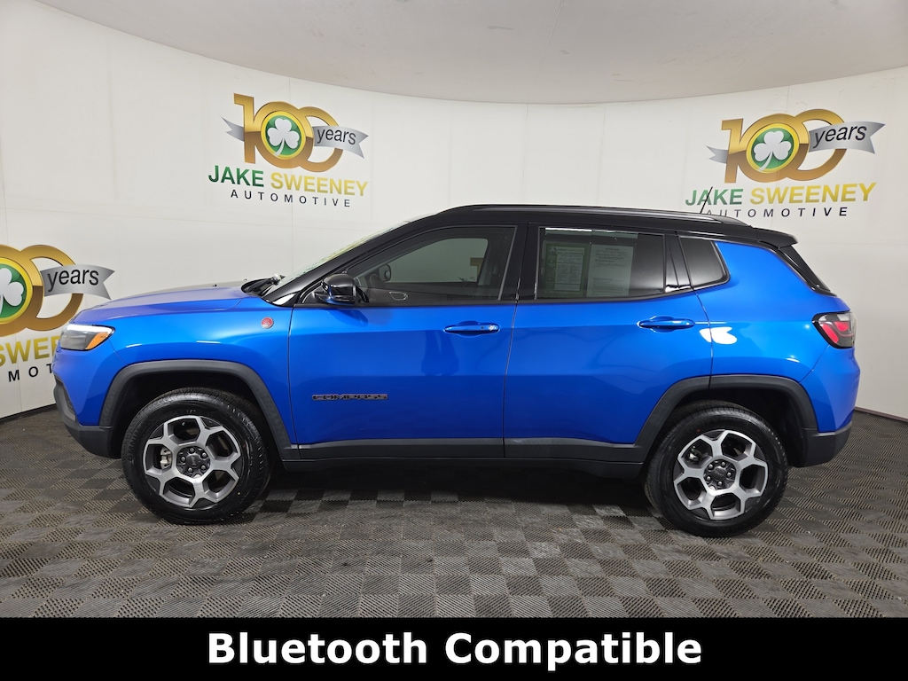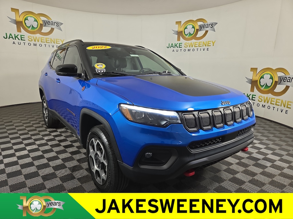 Jake Sweeney Is Here to Help! If you are in need of a new or used vehicle, we are offering you the ability to shop online and have your vehicle delivered to your home. Laser Blue Pearlcoat 2022 Jeep Compass Trailhawk 4WD 9-Speed 948TE Automatic 2.4L I4 LIFETIME POWERTRAIN WARRANTY, 4WD, 10.1" Touchscreen Display, 115V Auxiliary Power Outlet, 2nd Row Heated Seats, 2nd Row USB Type A/C Charge Only, 4G LTE Wi-Fi Hot Spot, Alexa Built-In, Cluster 10.25" TFT Color Display, Connected Travel & Traffic Services, Disassociated Touchscreen Display, Driver Seat Memory, Foot Activated Open 'N Go Liftgate, For Details, Visit DriveUconnect.com, For More Info, Call 800-643-2112, Global Telematics Box Module (TBM), GPS Navigation, HD Radio, Heated Front Seats, Integrated Voice Command w/Bluetooth, Leather Wrapped Steering Wheel, LED Low/Highbeam Projector Headlamps, No Satellite Coverage HI/AK/PR/VI/GU, Power 8-Way Adjust Front Passenger Seat, Power Adjust 8-Way Driver Seat, Power Front/Fixed Rear Full Sunroof, Power Liftgate, Premium Alpine Speaker System, Premium Leather Trimmed Bucket Seats, Premium LED Fog Lamps, Premium Taillamps, Quick Order Package 2GE, Radio: Uconnect 5 Nav w/10.1" Display, Remote Start System, Reversible Carpet/Vinyl Cargo Mat, SiriusXM Guardian - Included Trial (B), SiriusXM Radio Service, SiriusXM Satellite Radio, SiriusXM w/360L, Sun and Sound Group, Trailhawk Elite Group, Vehicle Information Center, Ventilated Front Seats, Windshield Wiper De-Icer.