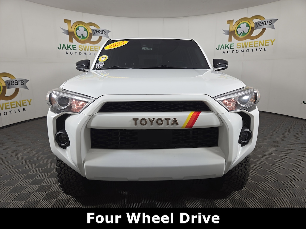 Jake Sweeney Is Here to Help! If you are in need of a new or used vehicle, we are offering you the ability to shop online and have your vehicle delivered to your home. Ice Cap 2023 Toyota 4Runner 40th Anniversary Special Edition 4WD 5-Speed with ECT 4.0L V6 DOHC 24V REMAINDER OF FACTORY WARRANTY, LIFETIME POWERTRAIN WARRANTY, MOONROOF, PREDATOR TUBE STEP, LED FOG LIGHTS, 4WD, Black/Graphite Artificial Leather, Anniversary Edition, Black Roof Rails, Garage Door Opener, Heated Outside Rear-View Mirrors.Recent Arrival!