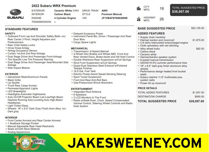 2022 Subaru WRX Premium Sedan