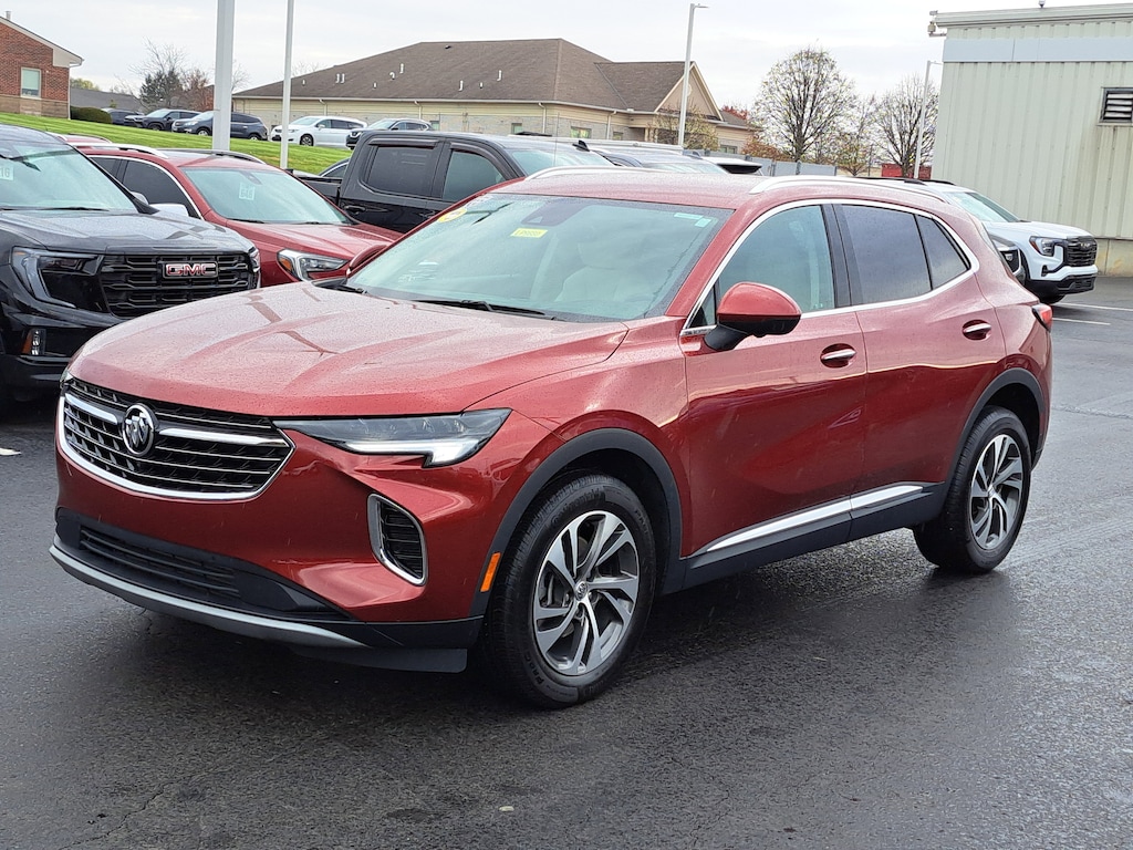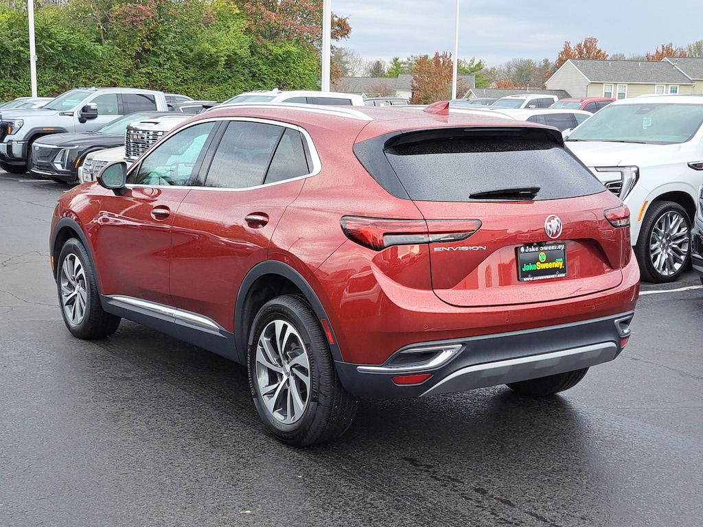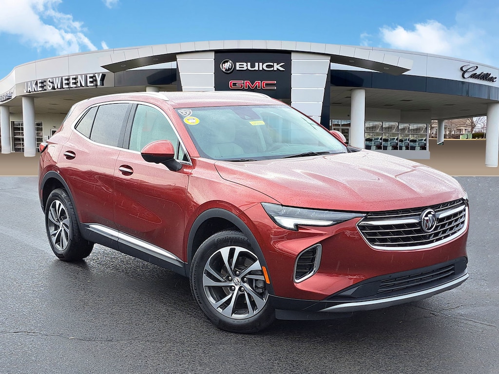 Have you ever wondered where to buy a Certified used car? Look no further! Jake Sweeney is here to Help. If you are in need of a new or used vehicle, we are offering you the ability to shop online and have your vehicle delivered to your home. Come visit us in store as well for a fun, fast, and easy car buying experience! Cinnabar Metallic 2022 Buick Envision Essence FWD 9-Speed Automatic 2.0L Turbocharged 3-Channel Programmable Universal Home Remote, 8-Way Power Driver Seat Adjuster, Air Conditioning, Apple CarPlay/Android Auto, Automatic temperature control, Bose Premium 9-Speaker Audio System Feature, Brake assist, Electronic Stability Control, Front & Rear Park Assist, Front dual zone A/C, HD Radio, HD Surround Vision, Head-Up Display, Heated Driver & Front Passenger Seats, Heated Steering Wheel, Lane Change Alert w/Side Blind Zone Alert, Memory Card Receptacle Audio System Feature, Memory seat, Perforated Leather-Appointed Seat Trim, Power driver seat, Power Liftgate, Power passenger seat, Power steering, Power windows, Preferred Equipment Group 1SL, Radio: Buick Infotainment System AM/FM w/Nav, Rear Cross Traffic Alert, Rear window defroster, Rear window wiper, Remote keyless entry, Safety Package, SiriusXM Radio, Steering wheel mounted audio controls, Technology Package I, Tilt steering wheel, Trip computer, USB Charging-Only Ports, Wheels: 18" Machined Aluminum w/Light Silver Met, Wireless Apple CarPlay/Wireless Android Auto.