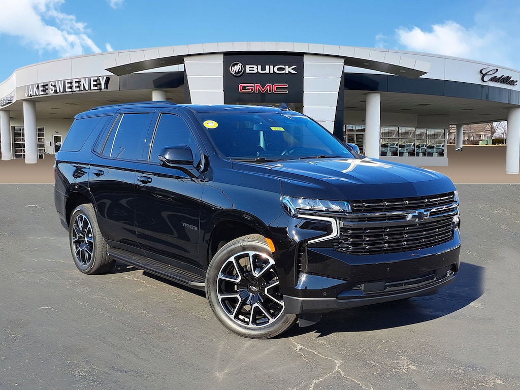 Have you ever wondered where to buy a Certified used car? Look no further! Jake Sweeney is here to Help. If you are in need of a new or used vehicle, we are offering you the ability to shop online and have your vehicle delivered to your home. Come visit us in store as well for a fun, fast, and easy car buying experience! Black 2022 Chevrolet Tahoe RST 4WD 10-Speed Automatic with Overdrive EcoTec3 6.2L V8 4WD, Jet Black/Victory Red Leather.