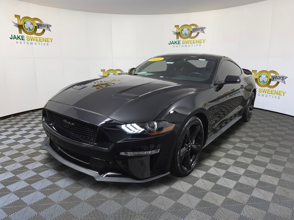 Our fantastic 2021 Ford Mustang GT Fastback in Shadow Black calls on its performance roots for modern thrills! Motivated by a 5.0 Liter V8 delivering 460hp matched to a 10 Speed Automatic SelectShift transmission. A spectacular sprint machine with launch control and track-only electronic line-lock, our mighty Mustang also grabs the road with excellent handling and can return nearly 24mpg on the highway. Aggressive good looks make this a muscle car you can't ignore, with LED lighting, fog lamps, sequential turn signals, hood vents, alloy wheels, and a rear diffuser and spoiler.