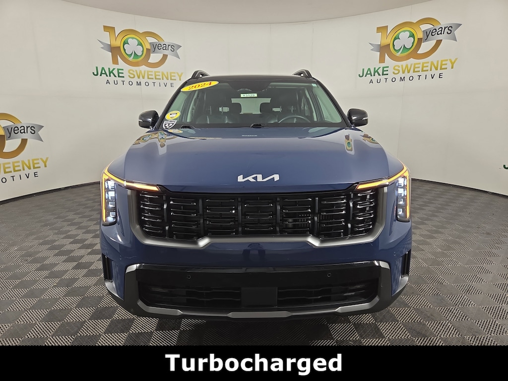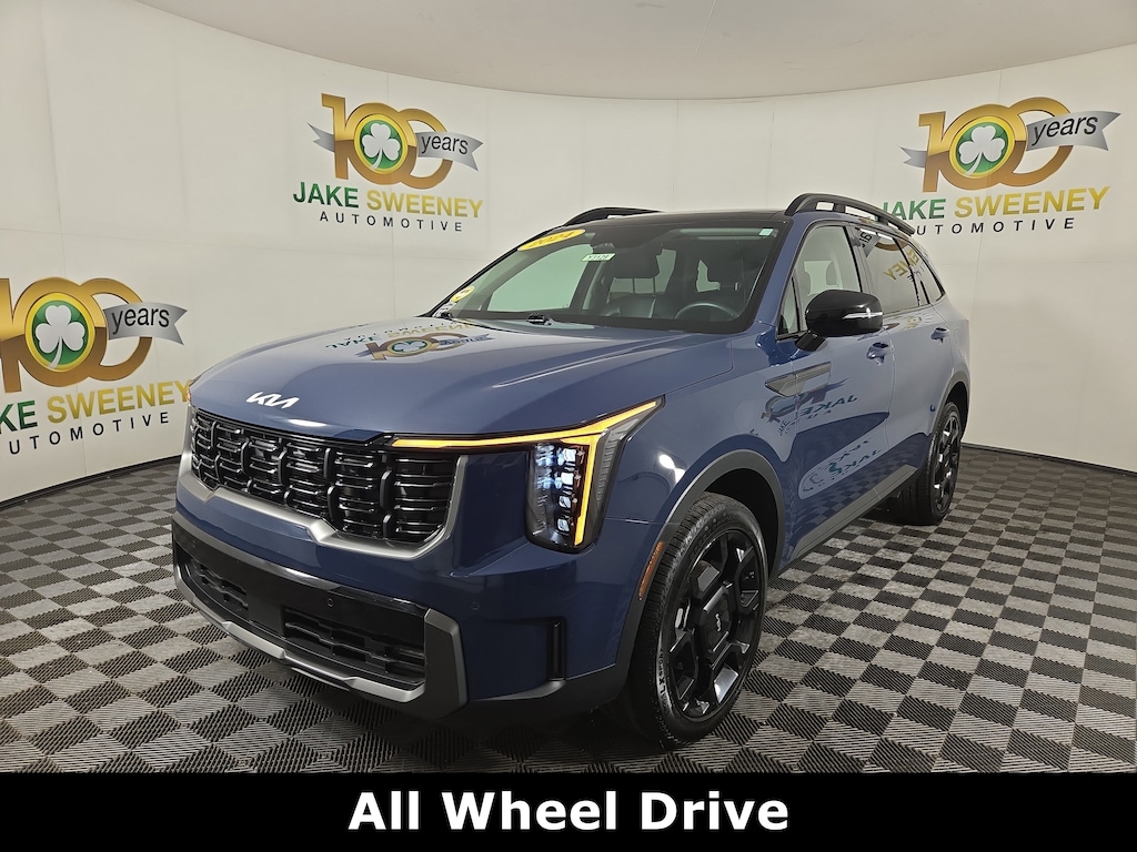 Clean CARFAX. Midnight Lake Blue 2024 Kia Sorento X-Line EX AWD 8-Speed DCT 2.5L I4 DGI Turbocharged DOHC 16V LEV3-SULEV30 281hp AWD.