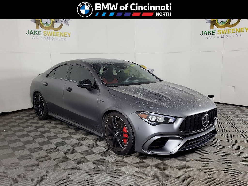 Sunroof, Panoramic Roof, Full-Time All-Wheel, Turbocharged, iPod/MP3 Input Mercedes-Benz AMG® CLA 45 with MANUFAKTUR Mountain Grey Magno exterior and Classic Red/Black Leather interior features a 4 Cylinder Engine with 382 HP at 6500 RPM*.