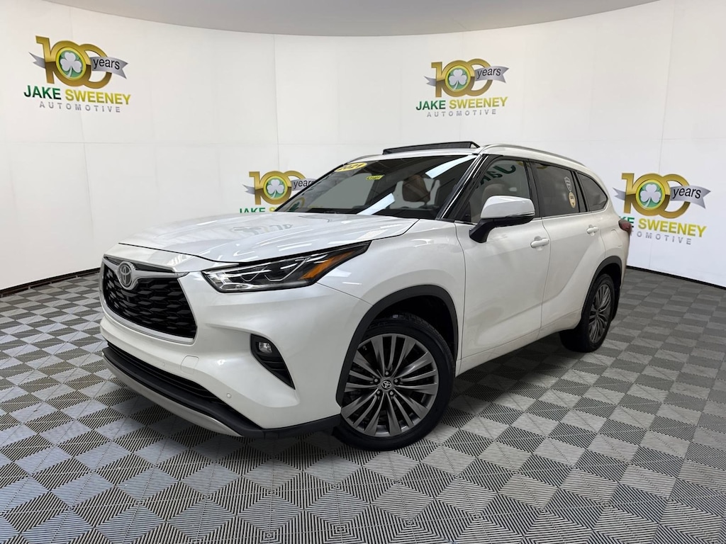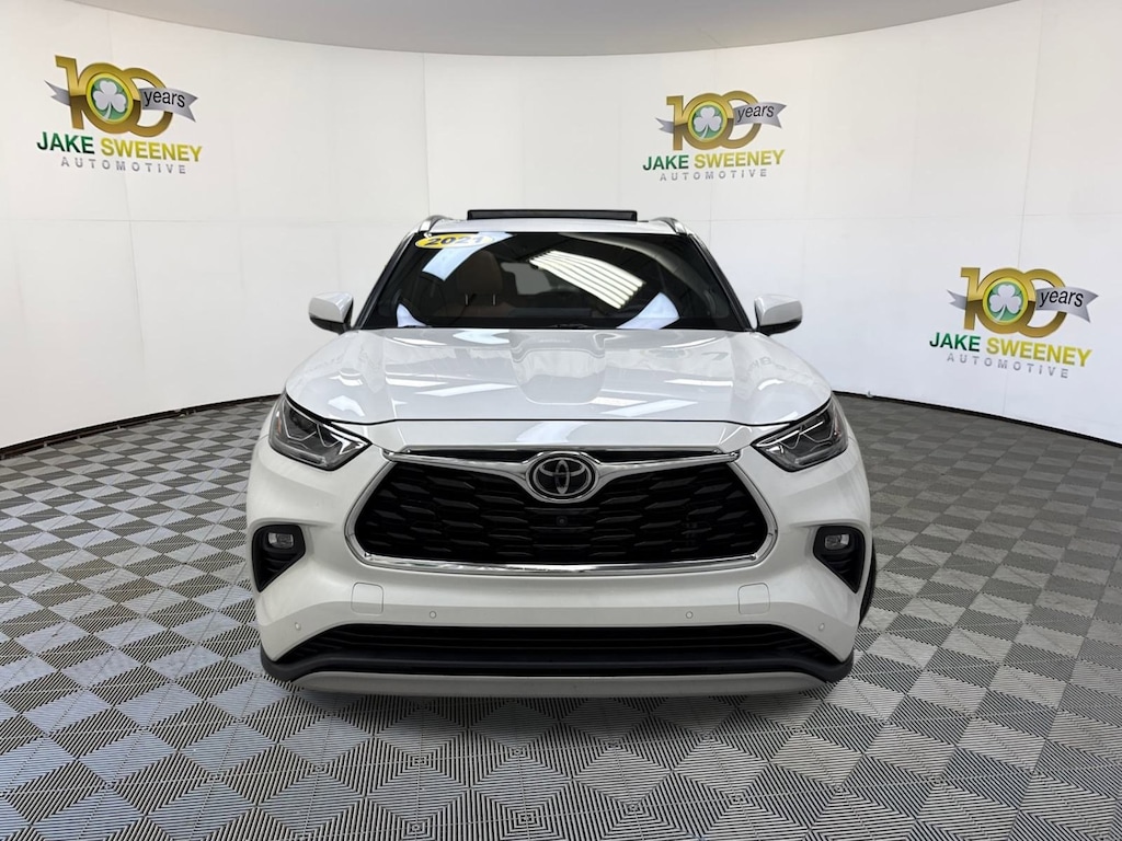 Strong and sophisticated, our impressive No Accidents Reported, Miles Below Market Average 2021 Toyota Highlander Platinum AWD in Blizzard Pearl leads with style! Featuring a 3.5 Liter V6 that delivers 295hp matched to an 8 Speed Automatic transmission for robust capability. Make the most of this All Wheel Drive SUV with its Multi-Terrain Select system, while also seeing nearly 27mpg on the highway and showing off a bold grille accented by LED lighting, adaptive headlamps, and high-output fog lamps, plus 20-inch alloy wheels, a panoramic sunroof, and a hands-free tailgate.